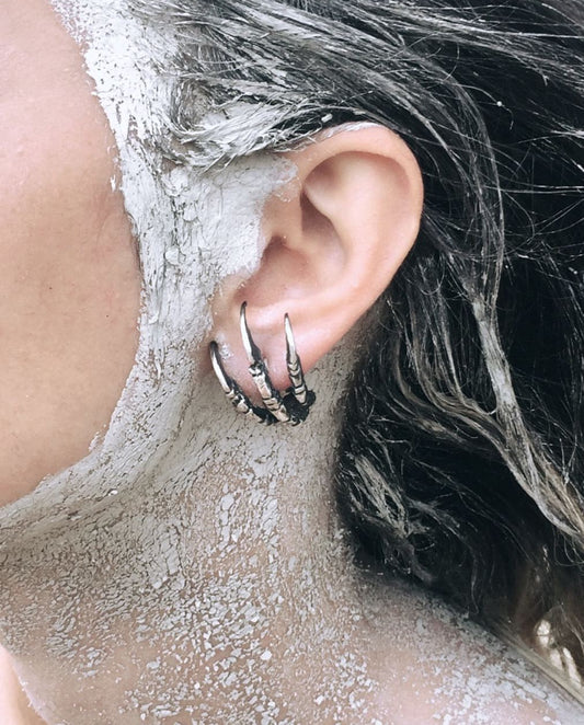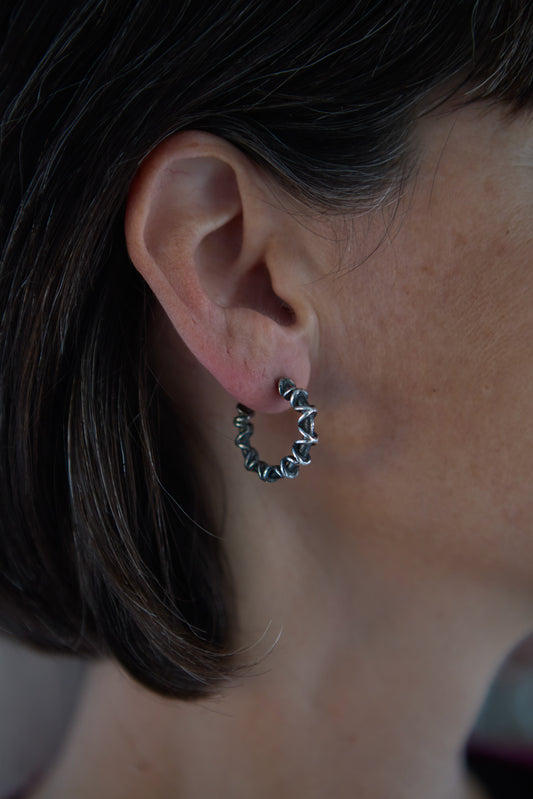 CELESTIAL SPINE SILVER-PLATE HOOPS