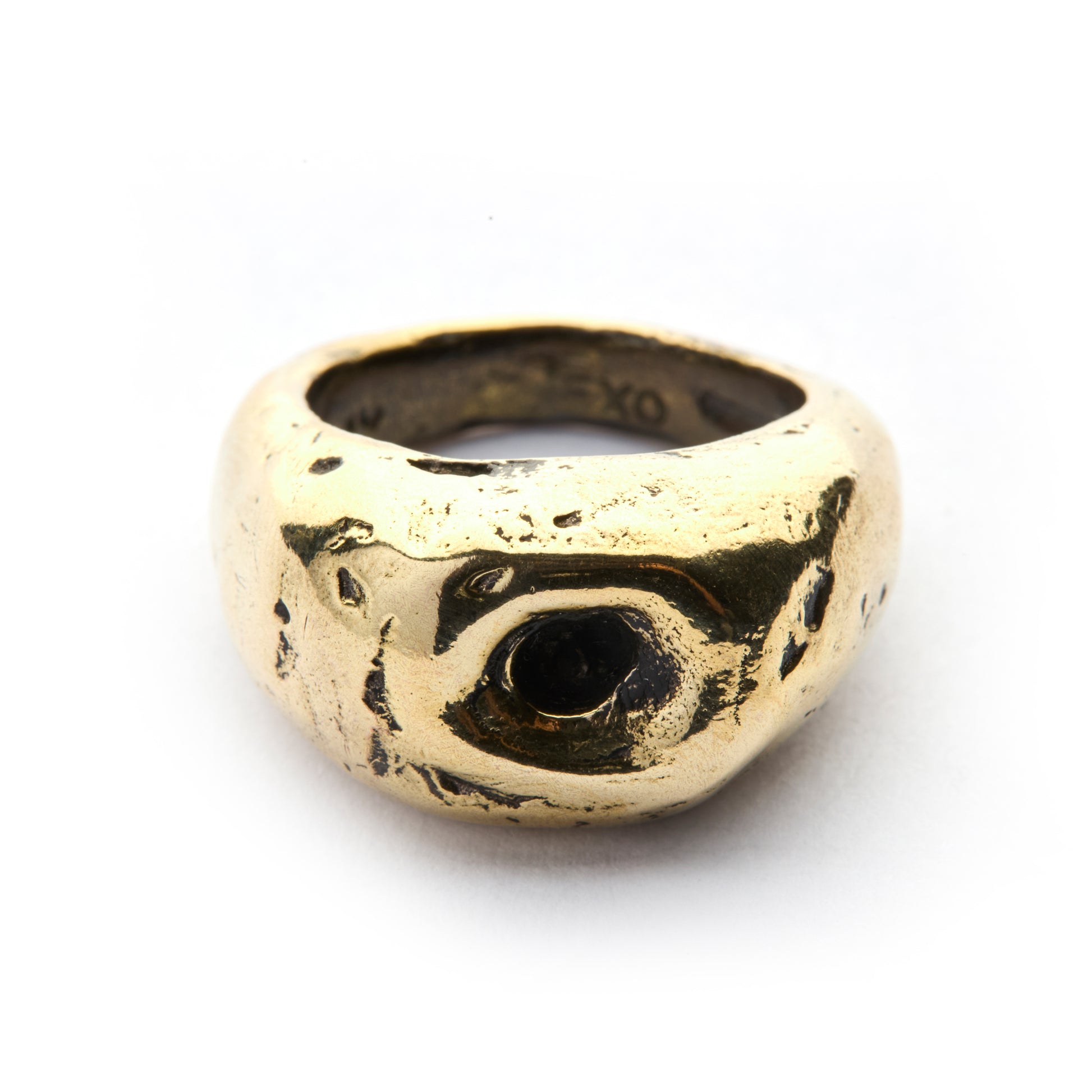 Cast in recycled bronze, hand carved/lost wax technique, antiqued molten band. The ABYSS ring embodies a hollow center, symbolizing the boundless essence of the cosmos. A constant reminder of the immeasurable, indefinable, and incomprehensible abundance of the universe.