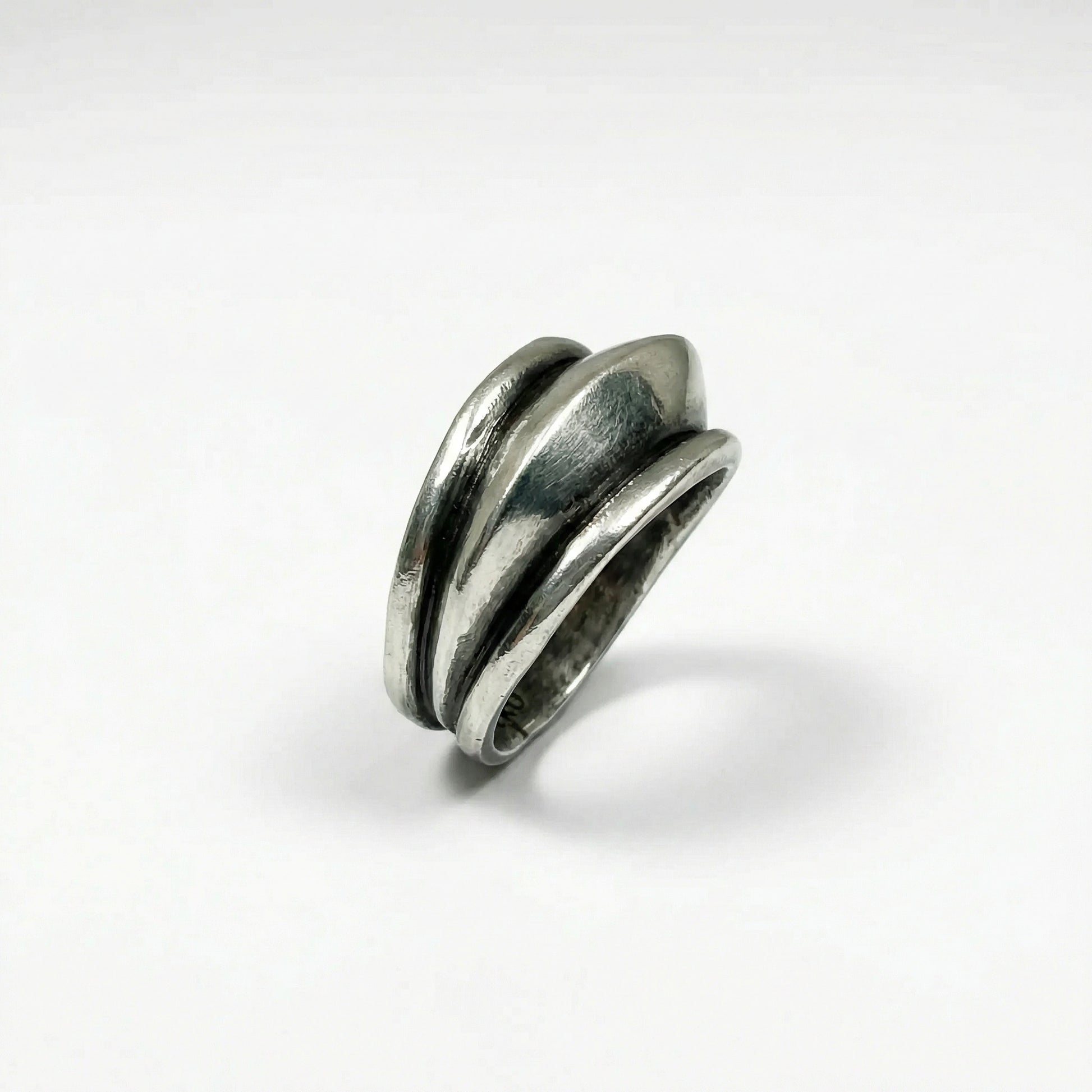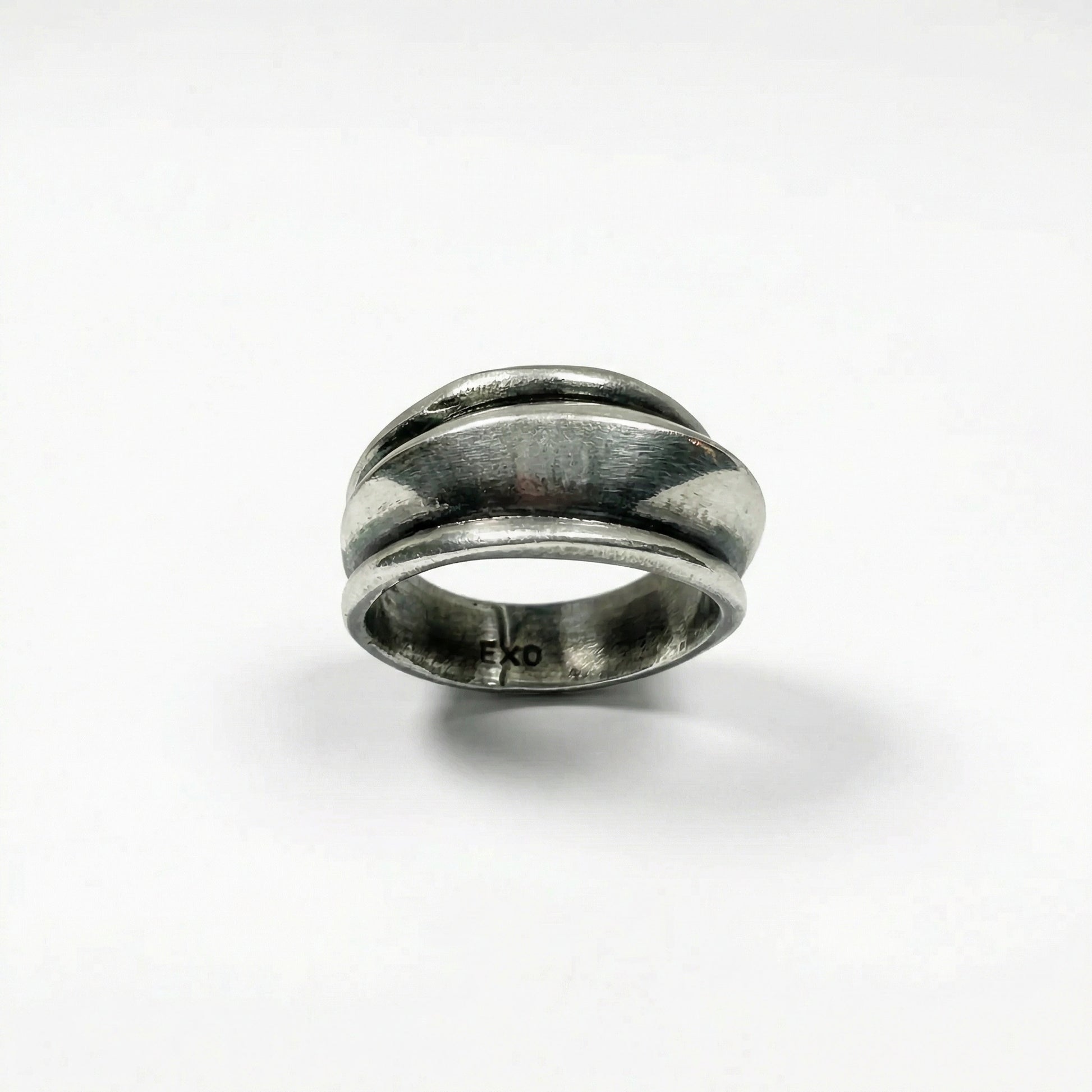 Geri dönüştürülmüş bronzdan dökülmüş, mikron gümüş kaplama, el oyması/kayıp mum tekniğiyle yapılmış, eskitilmiş şövalye yüzüğü. Antik savaşçıların koruyucu özünden ilham alan bu yüzük, güç ve cesaret kazandıran manevi bir kalkan görevi görür.